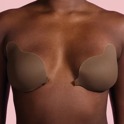 Starting at the wing, press and smooth the product onto your breast. Try not to re-position once the bra is stuck, to preserve the adhesive.