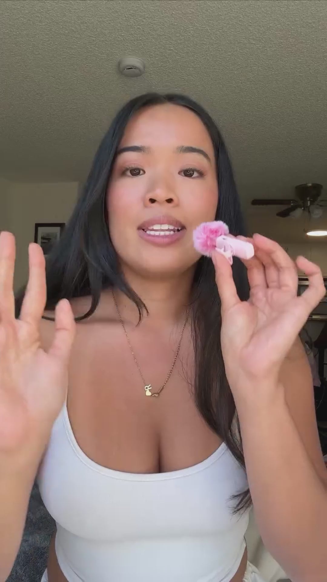The adhesive side is applied directly to your skin, and the clasp (once attached) should sit right in the center of your chest.